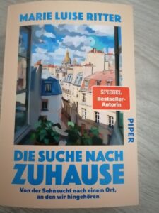 Kiinnitin välittömästi huomiota Marie Luise Ritterin kirjaan Die Suche nach Zuhause. Von der Sehnsucht nach einem Ort, an den wir hingehören (Piper 2025). Selailin ja ostin. Olisiko Marie Luise Ritterin kirjassa vastauksia itseäni askarruttaneisiin kysymyksiin, että mihin kuulun ja missä tunnen olevani kotona. Ja olenko jatkuvasti tavoittelemassa jotakin uuteen paikkaan liittyvää mielentilaa, jossa tuollainen ”zuhause” -tuntemus olisi mahdollista?